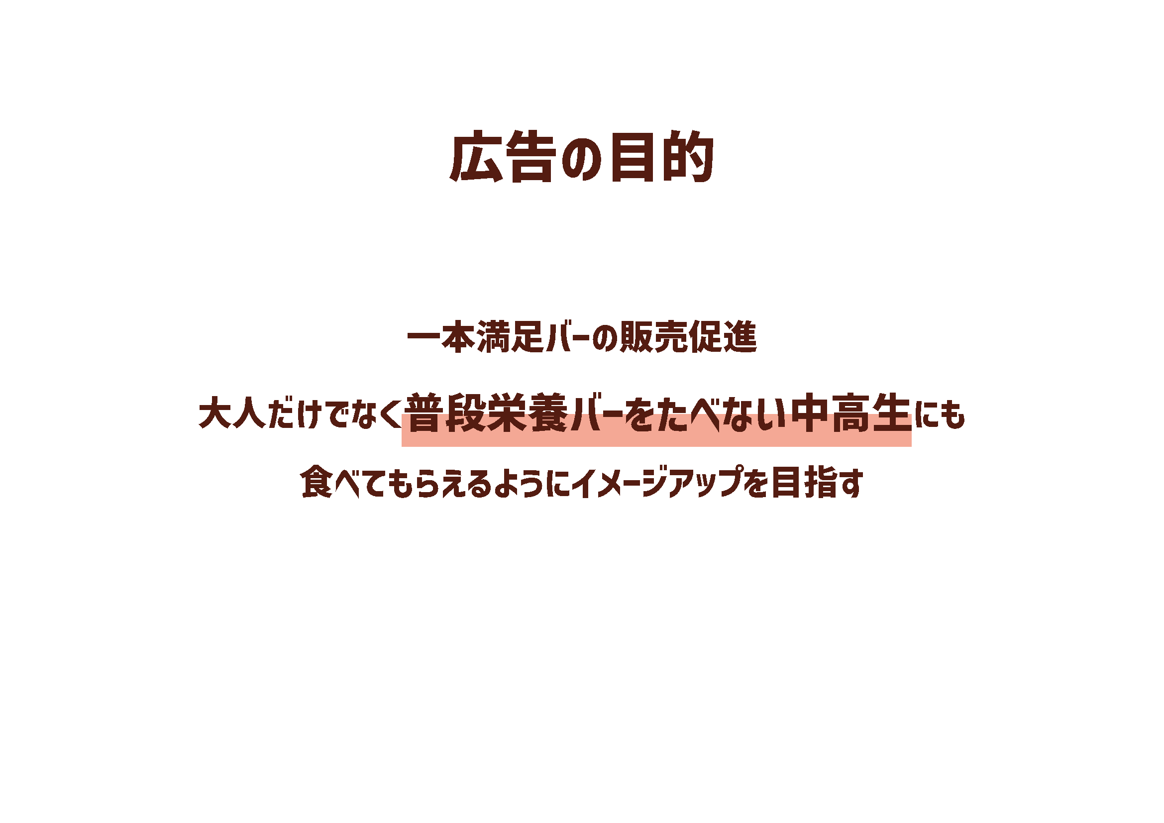 ・ 「1本満足バー」のターゲットを広げ、販売促進する
