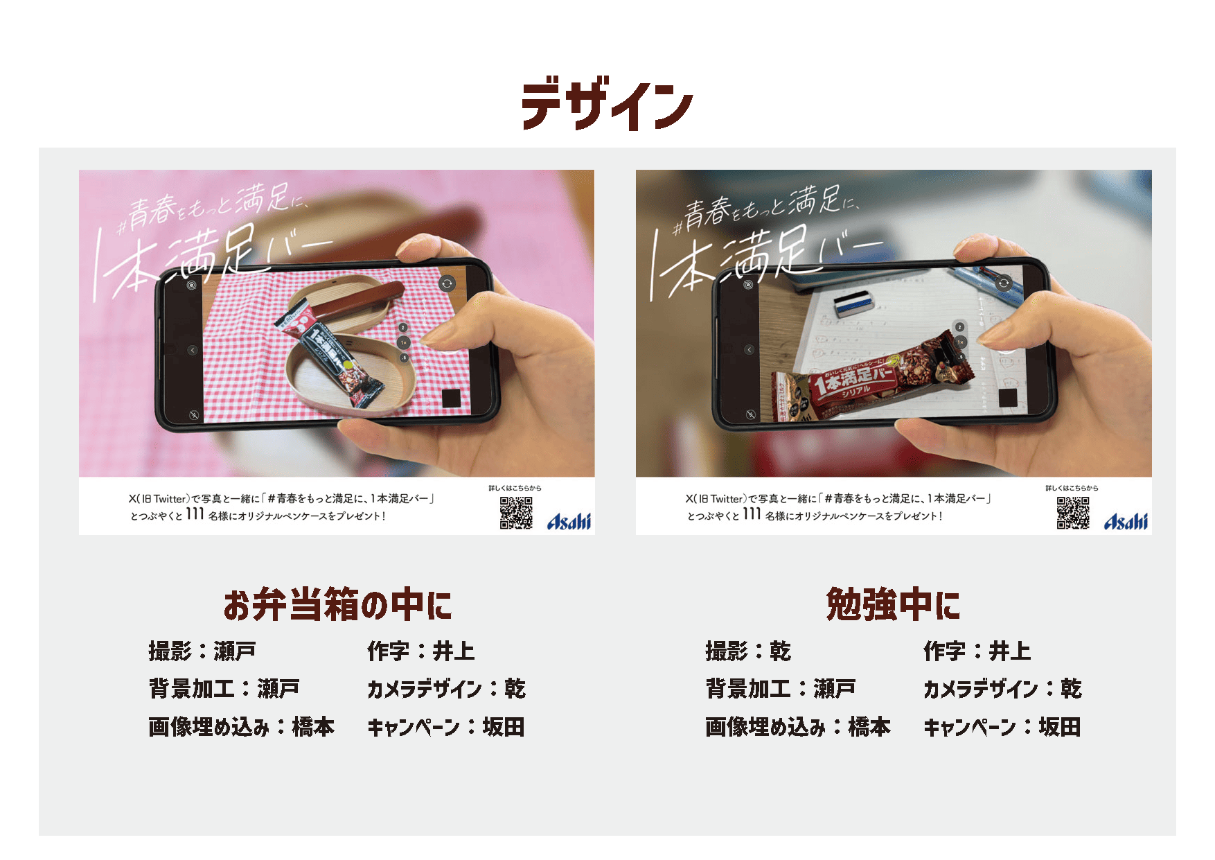 「1本満足バー」の販売促進を考え展開広告をデザインしました。