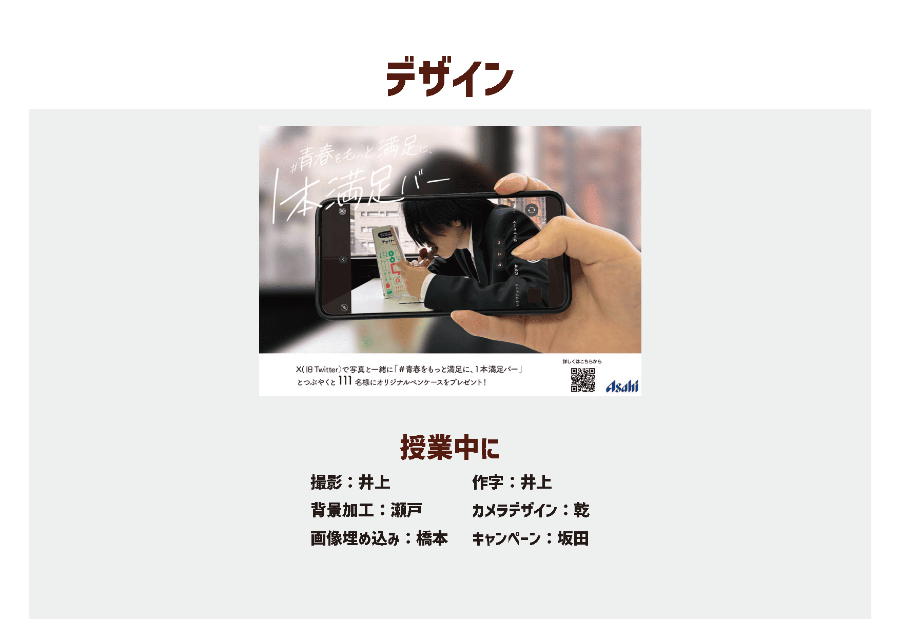 作字のコンセプトは「青春」です。中高生の解像度を上げるために手書き風の作字にし、各種SNSへの誘導を運ぶためにハッシュタグをつけました。