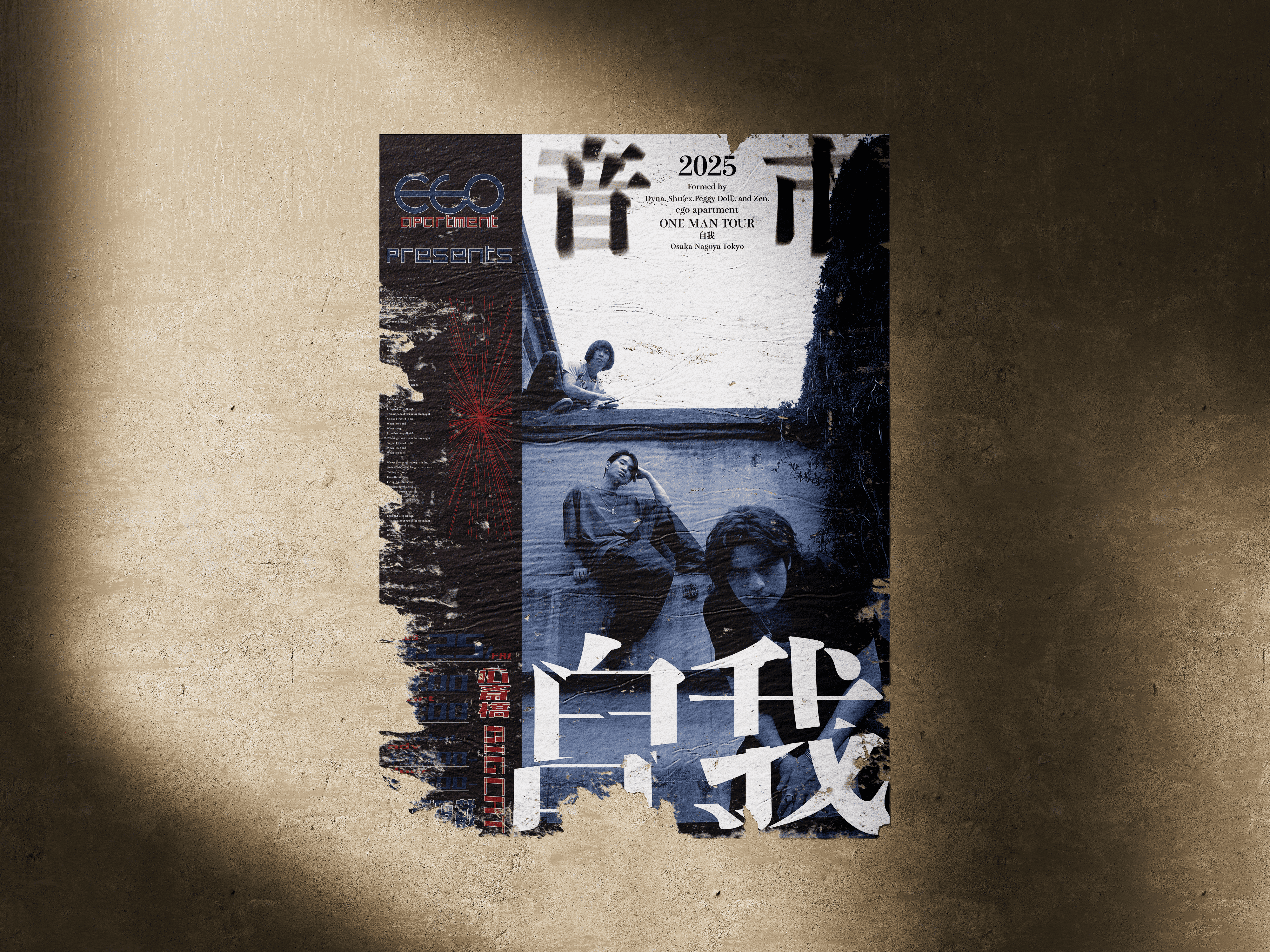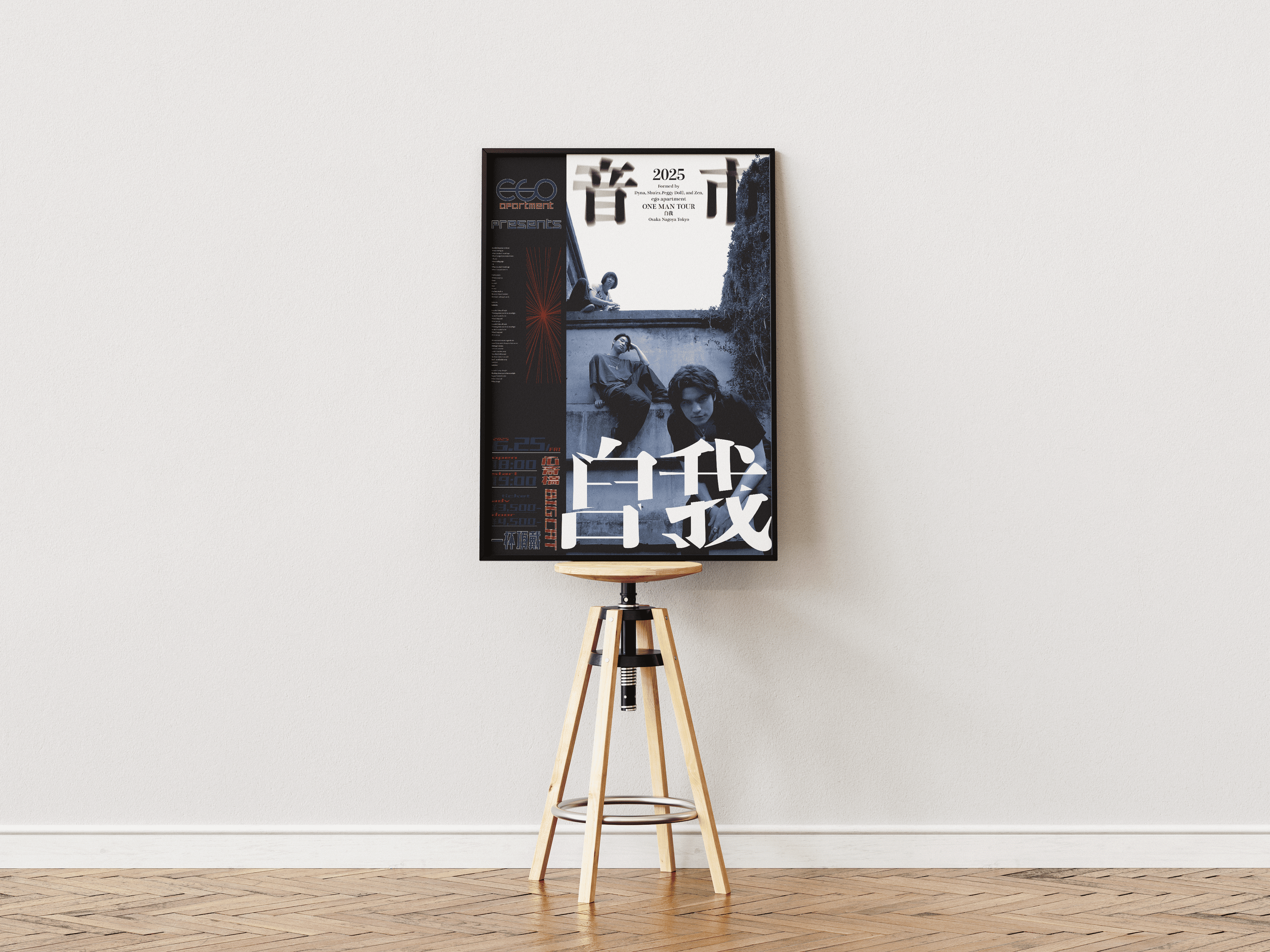 アーティスト名である「ego」つまり「自我」をイベントタイトルとし、タイポグラフィで1番目が行くように配置しました。